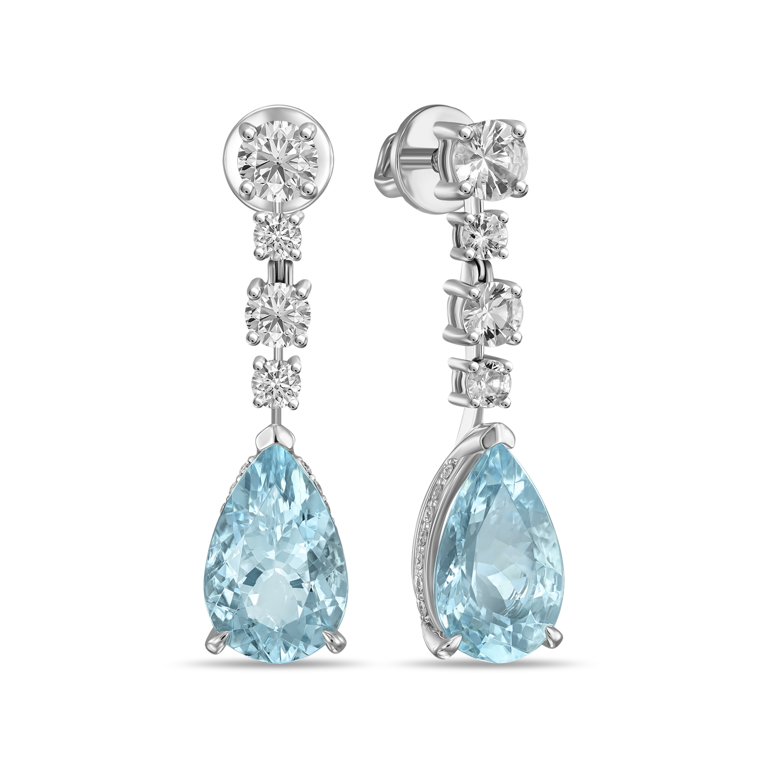 Серьги с аквамаринами, бриллиантами и цветными сапфирами