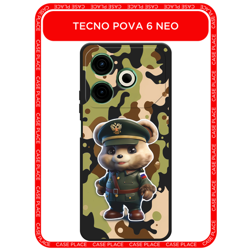 Черный матовый чехол на Tecno Pova 6 Neo / Техно Пова 6 Нео с принтом Мишка в форме 5