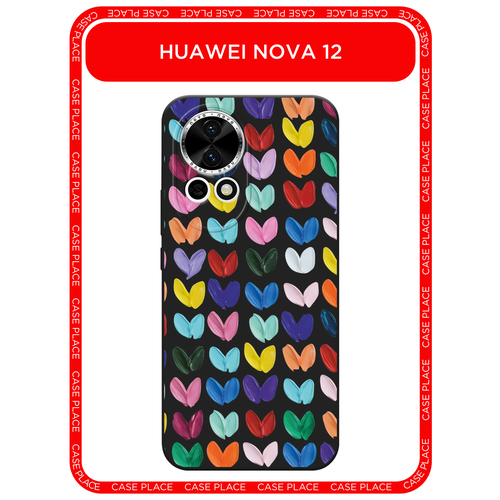 Черный матовый чехол на Huawei Nova 12/Nova13 / Хуавей Нова 12/Нова 13 с принтом Сердечки из краски
