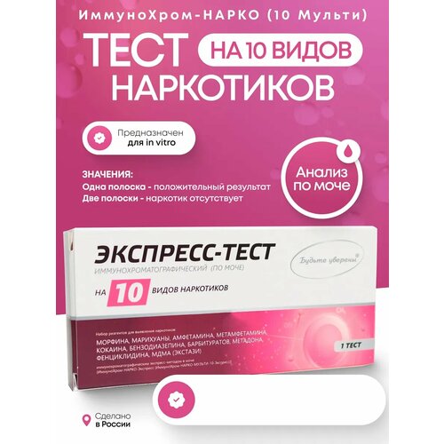 Тест на наркотики иммунохром-нарко (Мульти-10)-Экспресс на 10 видов, 1шт в инд. уп Будьте уверены