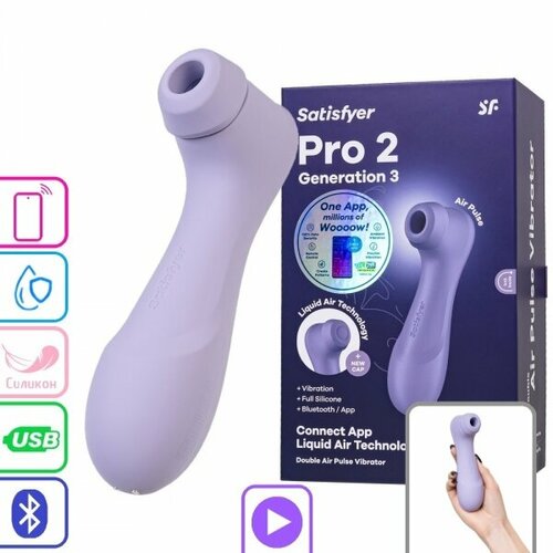 Satisfyer Сиреневый вакуумный стимулятор клитора Satisfyer Pro 2 Generation 3 с управлением через приложение Сиреневый