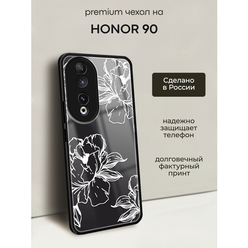 Чехол на Honor 90 / Хонор 90 с объемным принтом "Контурные цветы"