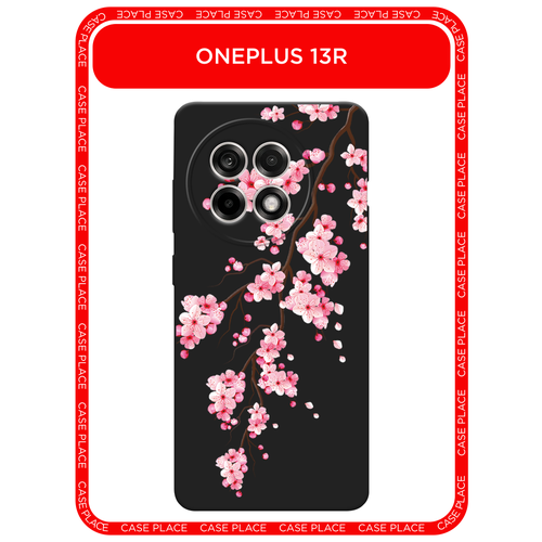 Черный матовый чехол на Oneplus 13R/Ace 5/5 Pro / Ван Плас 13R/Асе 5/5 Про с принтом Розовая сакура