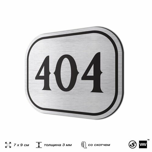 Номерок на дверь квартиры 404, для кабинета, офиса, шильдик 9 х 7 см, брашированная сталь, Айдентика Технолоджи