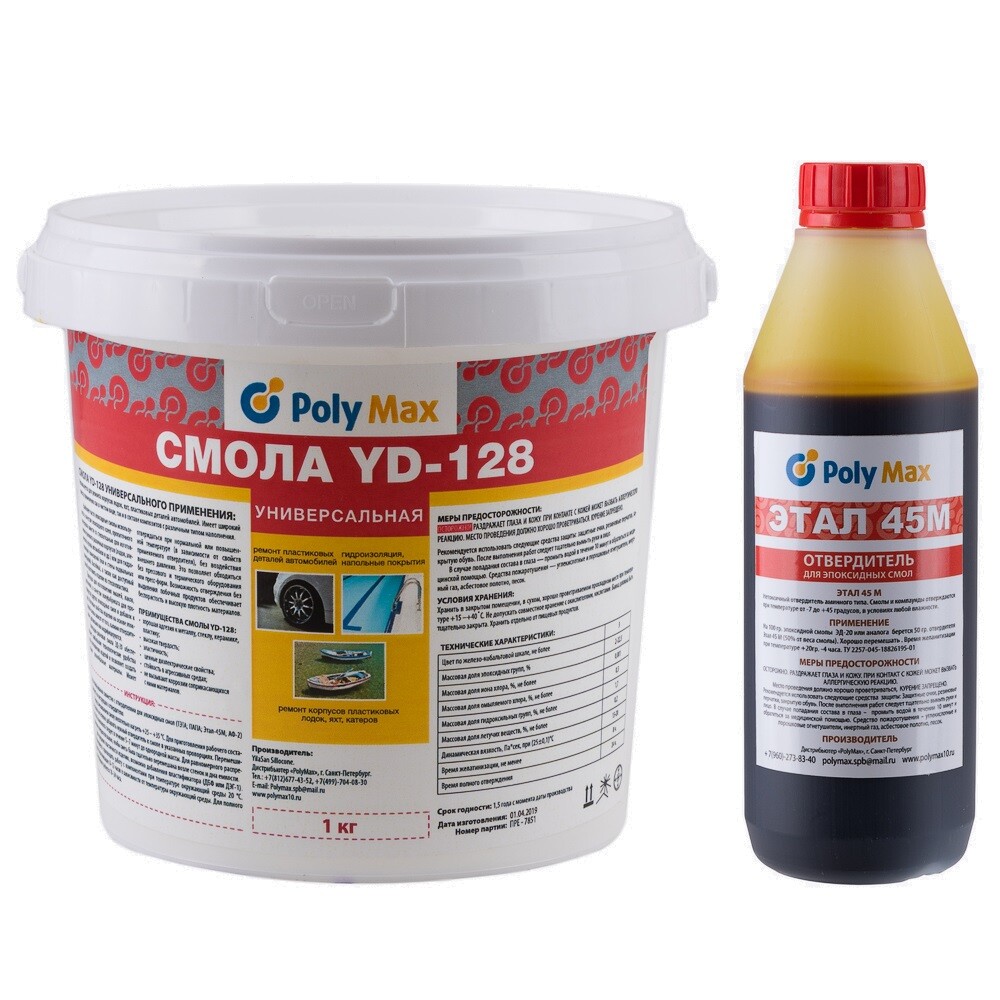 Эпоксидная смола PolyMax YD-128 (1 кг.) с отвердителем ЭТАЛ 45М (500 гр.) Техническая эпоксидная смола