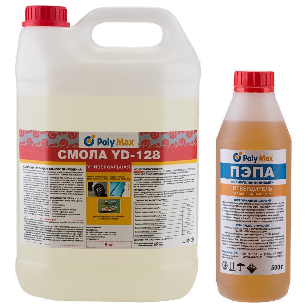 Эпоксидная смола PolyMax YD-128 (5 кг.) + отвердитель ПЭПА (500 гр.) Техническая эпоксидная смола