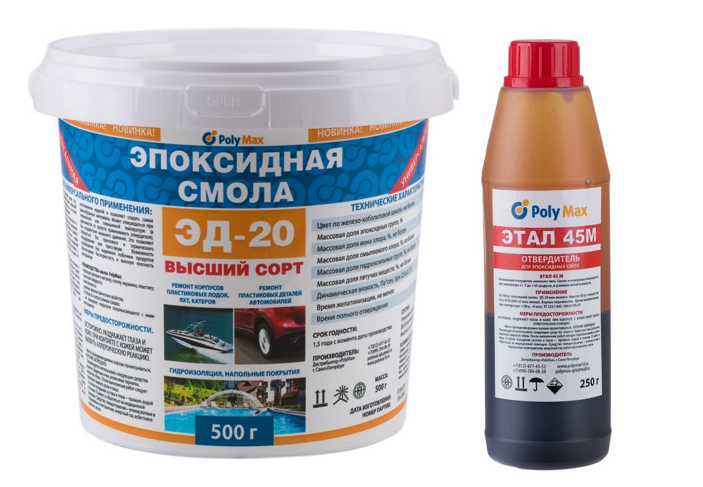 Эпоксидная смола PolyMax Эд-20 (500 гр.) с отвердителем ЭТАЛ 45М (250 гр.) Техническая эпоксидная смола