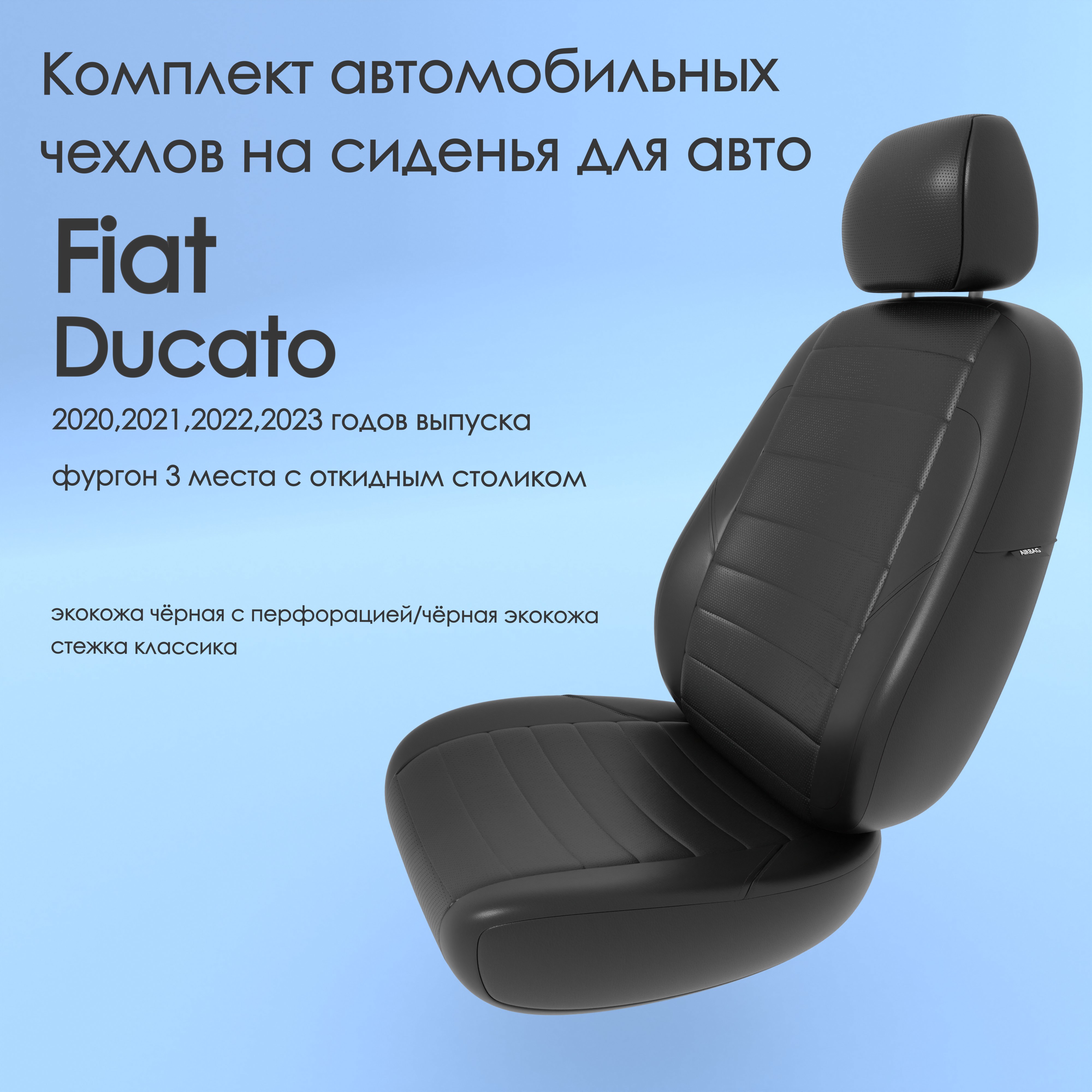 Чехлы Чехломания Fiat Ducato 2020,2021,2022,2023 фургон 3 м с откид стол чер-эк/k4 Fiat301_4