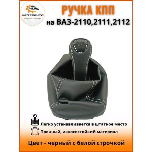 Ручка КПП с чехлом люкс-черный на ВАЗ-2110, 2111, 2112 (Лада, Lada), черный с белой строчкой 102954163762