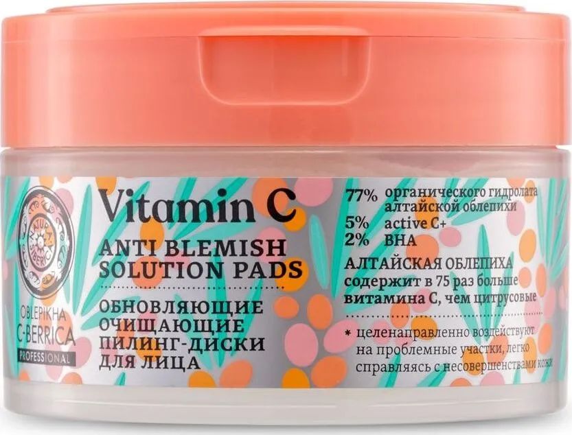 Пилинг-диски для лица Natura Siberica Oblepikha C-Berrica, обновляющие, очищающие, 20 шт. 100046610266