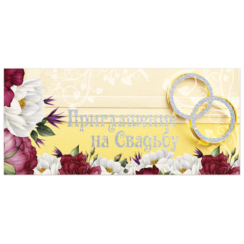 Приглашение на торжество 70х120 мм (в развороте 70х240 мм), "Цветы", выборочный лак, ЗОЛОТАЯ СКАЗКА, 128939. Продается набором по (...