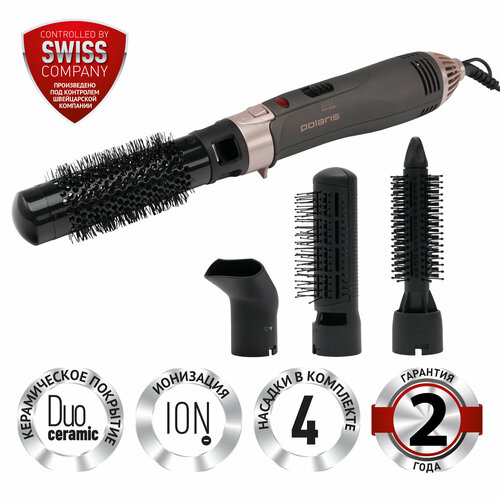 Фен-щетка Polaris PHS 1020RK бордовый/черный, бордовый/черный, 1000 Вт, вращающаяся щетка, диаметр - 35 мм, 50 мм, насадок - 2 шт, шнур - 1.83 м