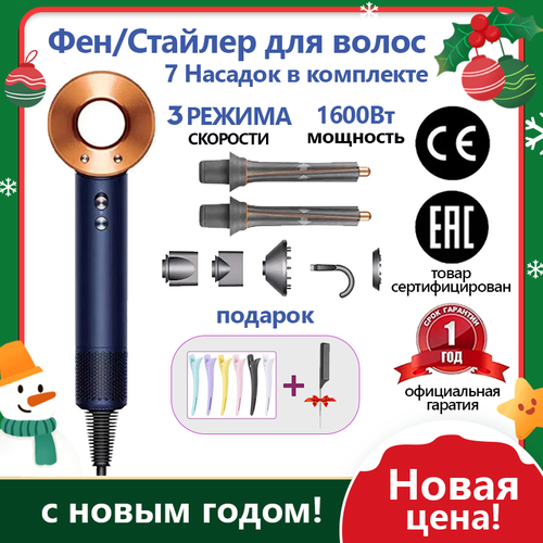 Профессиональный фен для волос beutyone, с насадками для укладки, стайлер для волос, скоростей 3, золотистый