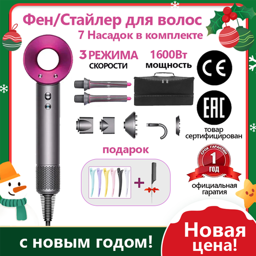 Фен для волос beutyone, стайлер для волос с сумкой. с насадками для укладки, скоростей 3, розовый