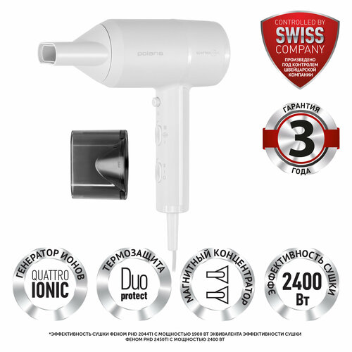 Фен Polaris PHD 2044Ti Quattro Ionic Белый/серый