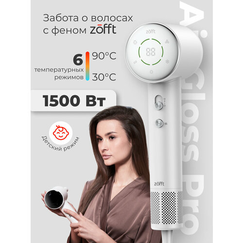 Профессиональный фен для волос Zofft Air Gloss Pro HS-102W (дисплей, магнитная насадка, ионизация, 6 режимов работы) (белый)