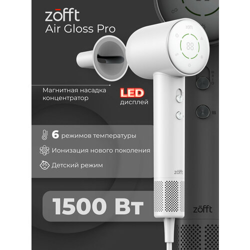 Фен для волос Zofft Air Gloss Pro HS-102W (дисплей, магнитная насадка, ионизация, 6 режимов работы) (белый)