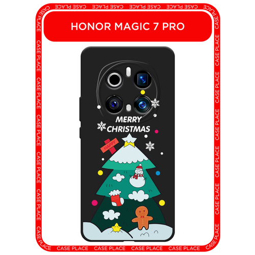 Черный матовый чехол на Honor Magic 7 Pro / Хонор Мэджик 7 Про с принтом Christmas tree white