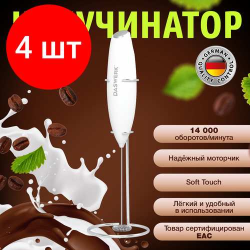 Комплект 4 шт, Капучинатор/вспениватель молока электрический на подставке soft touch, белый, DASWERK, 456178