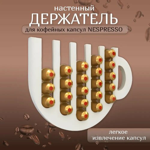 Настенный держатель для кофейных капсул NESPRESSO, "Чашка кофе", Белая