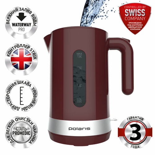 Чайник Polaris PWK 1803C Water Way Pro RU, бордовый