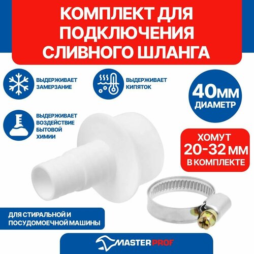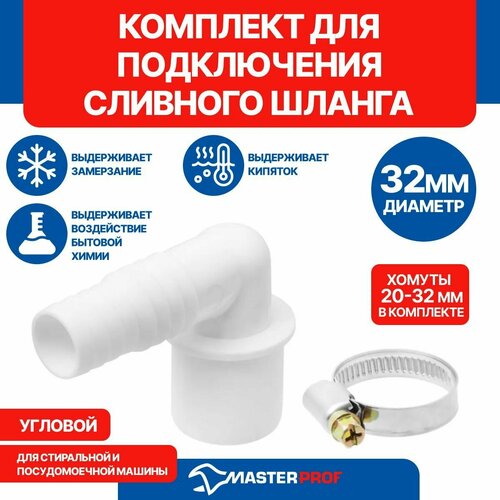 Комплект подключения для сливного шланга стиральных и посудомоечных машин, полипропилен, диаметр 40 мм, угловой, MasterProf