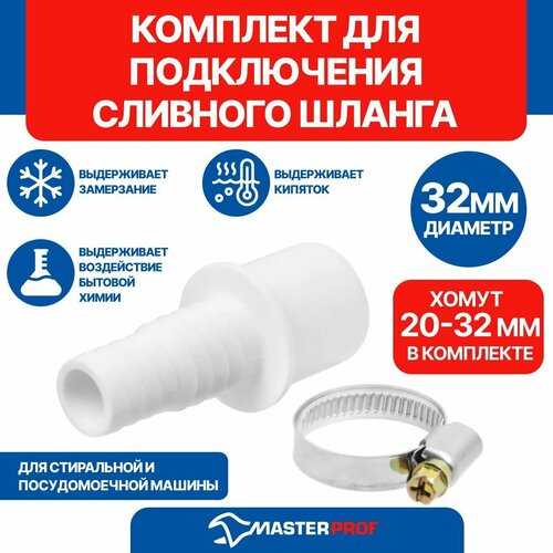 Прямой штуцер с хомутом для сливного шланга стиральных машин MasterProf d40 - 19/22 мм ИС.110663