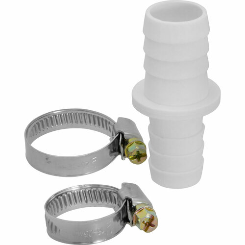 Переходник помогает присоединить сливной шланг к фитингу внутренней канализации, что обеспечивает слив воды из бытовой техники. Выдерживает замерзание, кипяток и воздействие бытовой химии. Для прочности соединения сливного шлага с переходником рекомендуется укрепить соединение металлическим хомутом. Диаметр внешний 20/23/50 Материал переходника: полипропилен Материал хомута нержавеющая сталь. В комплекте хомут: ширина полосы 9 мм, диаметр 20-32 мм, 1 шт.