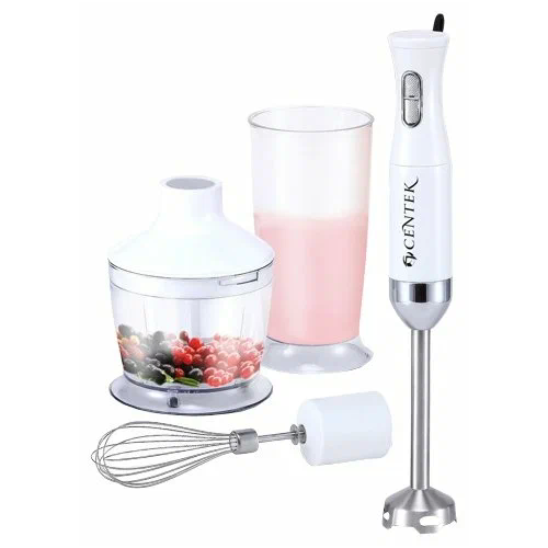 Блендер погружной Centek CT-1352 мощный, со стаканом и насадками, измельчитель овощей и для фруктов, чоппер, миксер и смешиватель, венчик для взбивания, турбо режим, черный