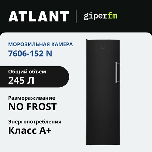 Морозильная камера Atlant 7606-152 N, класс энергоэффективности A+, 245 л, NO FROST, LED освещение, функция быстрого замораживания, использование в неотапливаемых помещениях, черный металлик
