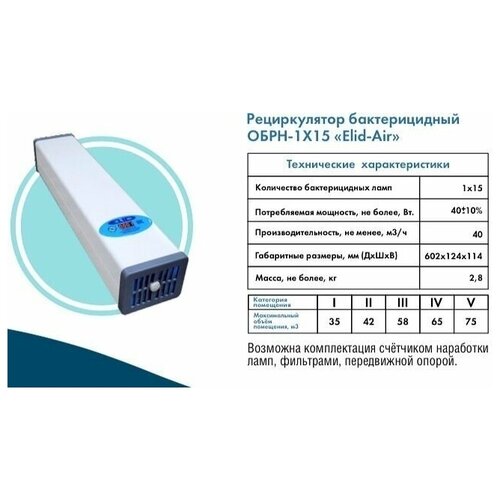 Рециркулятор очиститель воздуха бактерицидный одноламповый Элид 1х15 (Elid-air)