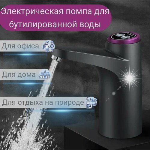 Помпа для воды, электрическая, установка на бутылку, сверху, черная, 1500mAh, 2.5 л/м