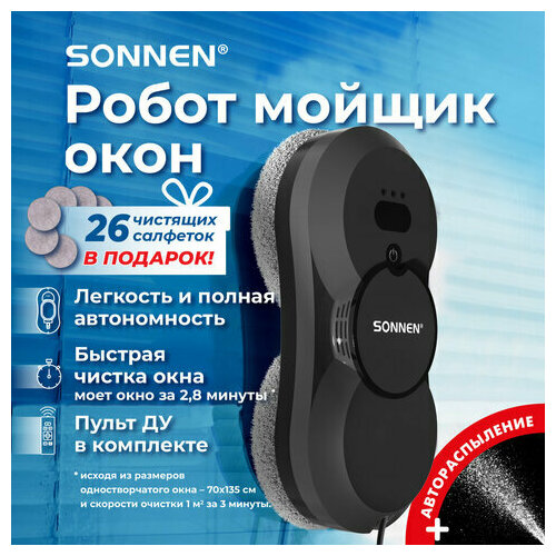 Робот-мойщик окон SONNEN Tech RWC-123 SPRAY, датчик от падения, 26 салфеток, пульт ДУ, 456236