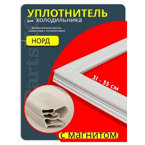 Уплотнитель для двери холодильника Норд. 310x550 мм. Прокладка морозильной камеры (морозилки) для Nord. Магнитный, резиновый под планку дверки.