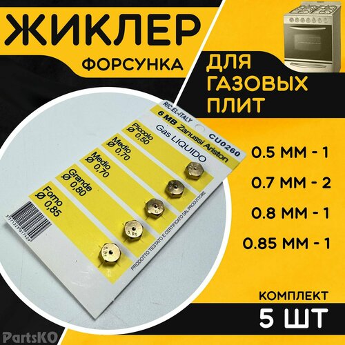Жиклеры для газовой плиты Занусси, Аристон / Форсунки для плиты Zanussi, Ariston. Комплект 5 шт. Италия