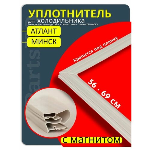 Уплотнитель для двери холодильника Atlant Minsk. 560x690 мм. Прокладка морозильной камеры (морозилки) для Атлант Минск. Магнитный, резиновый под планку дверки не в паз, под планку.
