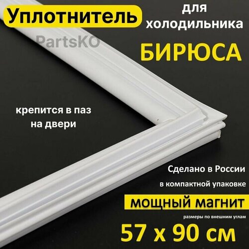 Уплотнитель для двери холодильника Бирюса. 570x900 мм. Прокладка морозильной камеры (морозилки). Магнитный, резиновый под планку дверки в паз.