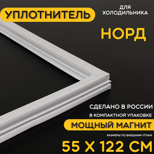 Уплотнитель для двери холодильника Норд 233. 550x1220 мм. Прокладка морозильной камеры (морозилки) для Nord. Магнитный, резиновый под планку дверки.
