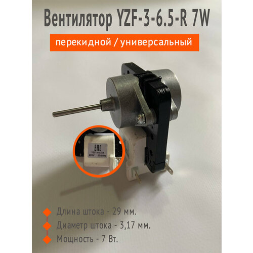 Вентилятор YZF-3-6.5-R 7W (перекидной) универсальный (шток Ø-3,17мм, L-29 мм)