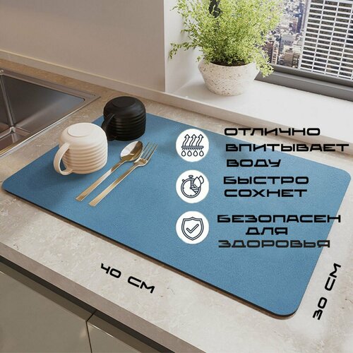 Коврик впитывающий для кухонной столешницы 30×40см, небесно-голубой