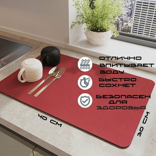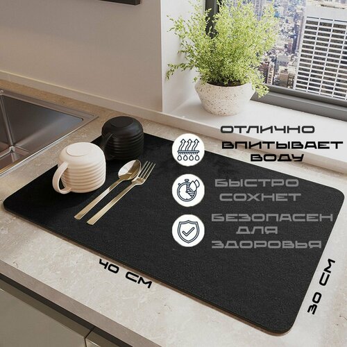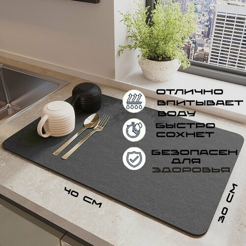 Коврик впитывающий для кухонной столешницы 30×40см, темно-серый