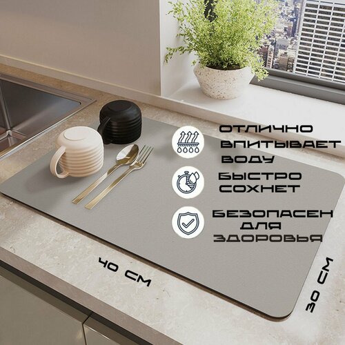 Коврик впитывающий для кухонной столешницы 30×40см, светло-серый