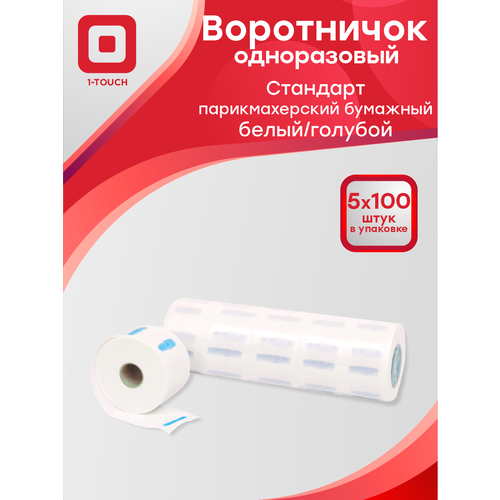 Воротнички парикмахерские одноразовые бумажные стандарт Белый 5 рулонов по 100 шт 1-Touch