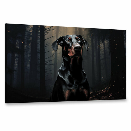 Интерьерная картина 100х60 "Доберман: взгляд ночи"