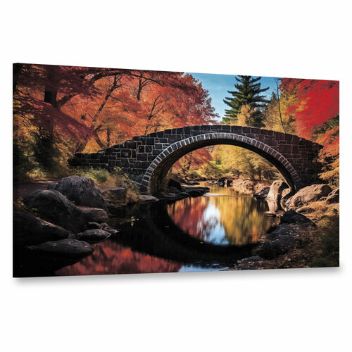 Интерьерная картина 100х60 "Пейзаж с каменным мостом и осенними деревьями"