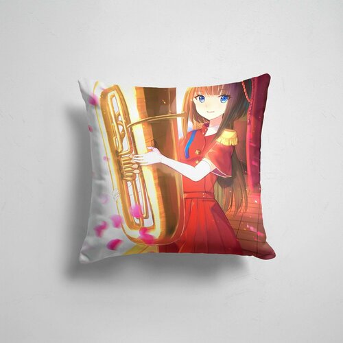 Подушка декоративная 45х45см девушка / труба / музыкальный инструмент / оркестр / музыка / аниме