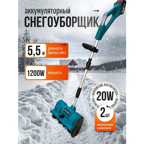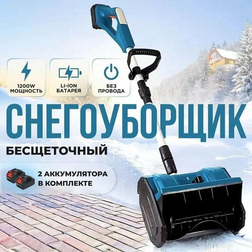 Снегоуборщик аккумуляторный лопата, 2 АКБ 4 Ач и ЗУ, Синий ручной, для уборки снега
