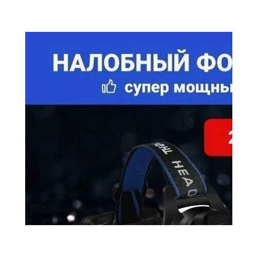 Налобный фонарь светодиодный, влагозащитой, уровнем заряда/Аккумуляторы 18650, LED, для рыбалки, охоты