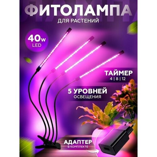 Фитолампа на прищепке 4 лампы, Фитолампа , Фитолампа для растений , Фитолампа для рассады , Светодиодная фитолампа , Фитолампа для цветов