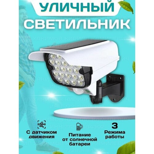 Уличный светильник прожектор с датчиком движения и солнечной батареей на аккумуляторе, лампа муляж видеокамеры наблюдения